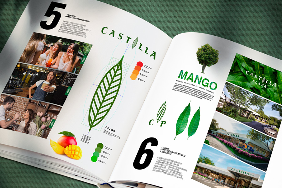 Con Castilla estuvimos de acuerdo en resaltar un elemento propio del paisaje que rodea el centro comercial; escogimos un mango adulto que está sembrado en el patio al interior de la construcción, llevándolo a la síntesis en su máxima expresión.